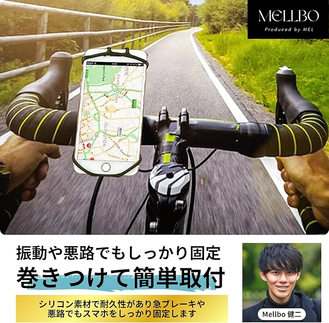 ✅【シリコン素材で抜群の安定感】シリコン製で柔軟性と防水性を備え、4〜7インチのスマートフォンに対応。急な雨や悪路でも安心して使える頑丈な設計。