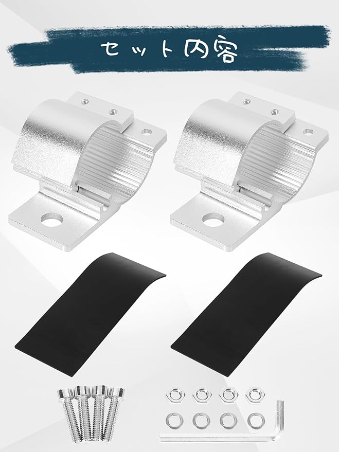 作業灯ステー 経66mm-71mm アルミ製 10mmホール ゴムスペイサー付き ケガ無し 錆びにくい 挟み込み式 ブラケット 外装パーツ用ステー シルバー SUV 作業用 除雪車 ATVに対応 2個セット