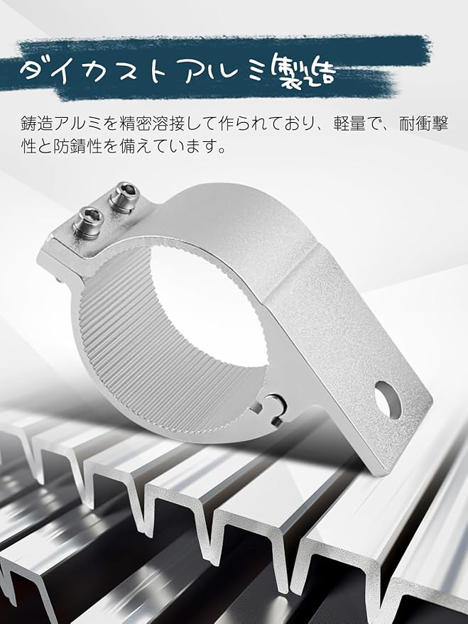【耐久性に富む素材】ブラケット全体はアルミニウム合金の金属素材を使用し、表面処理を施しているため、強度と防錆性能に優れ、長期使用が可能。