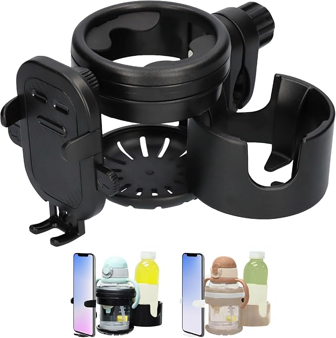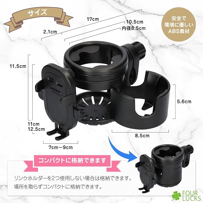 【現役保育士推薦】 FOUR LUCKS ベビーカー ドリンクホルダー 2個 スマホ 携帯 (ブラック)