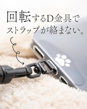 Dリング金具が回転するのでストラップ紐が絡みにくく、使いやすいストラップホルダーです。