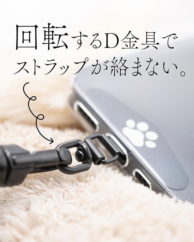 [ZUKOU] 可愛い 肉球 スマホ ストラップ ホルダー 丈夫 ステンレス ストラップホルダー 切れない スマホストラップ 回転