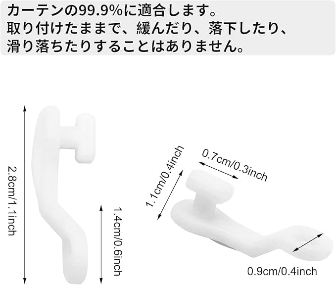 2.カーテン スライダーが対応のレール溝幅と上下内径の高さは制限されています。よくサイズを確認してください。