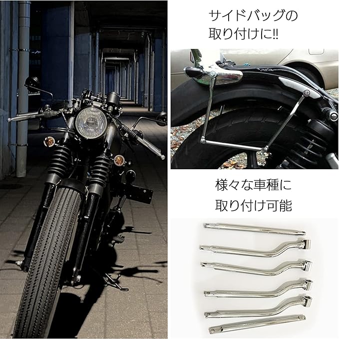 バイクツーリングをもっと快適に!汎用サイドバックサポートとしても使用可能なサイドバッグ取り付けステーで、バッグの傷防止や収納増設を実現。ハーレーはもちろん、国産アメリカンタイプやネイキッドタイプにも対応。ツーリング時の収納スペースを拡張し、快適な旅をサポートします。