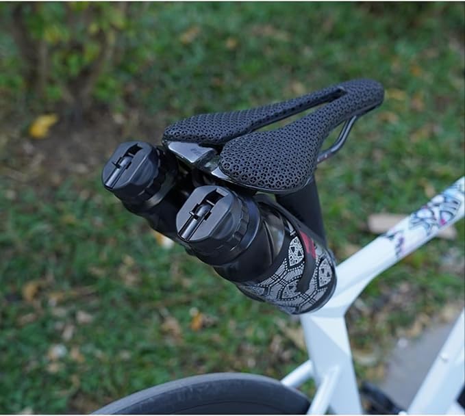 【サドル後方に2本のボトルを装着可能】ダブルタイプのボトルケージホルダーで、ロングライドや夏場のサイクリングでの水分補給に便利。体の動きを妨げず、取り出しやすい位置に設計されています。