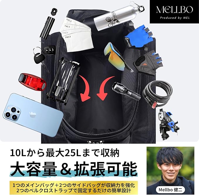 ✅ 【拡張可能な自転車バッグで快適サイクリング】買い物や通勤、ツーリング中に「荷物が入りきらない…」と困ったことはありませんか?この自転車バッグなら、10Lから25Lまで容量を自由に調整可能。メイン収納に加え、ジッパーを開くだけでサイドポケットが広がり、荷物が増えても余裕で収納できます。長距離ライドや買い物帰りも、これ一つで快適に。荷物の量に合わせて調整できるので、どんなシーンでも大活躍します。