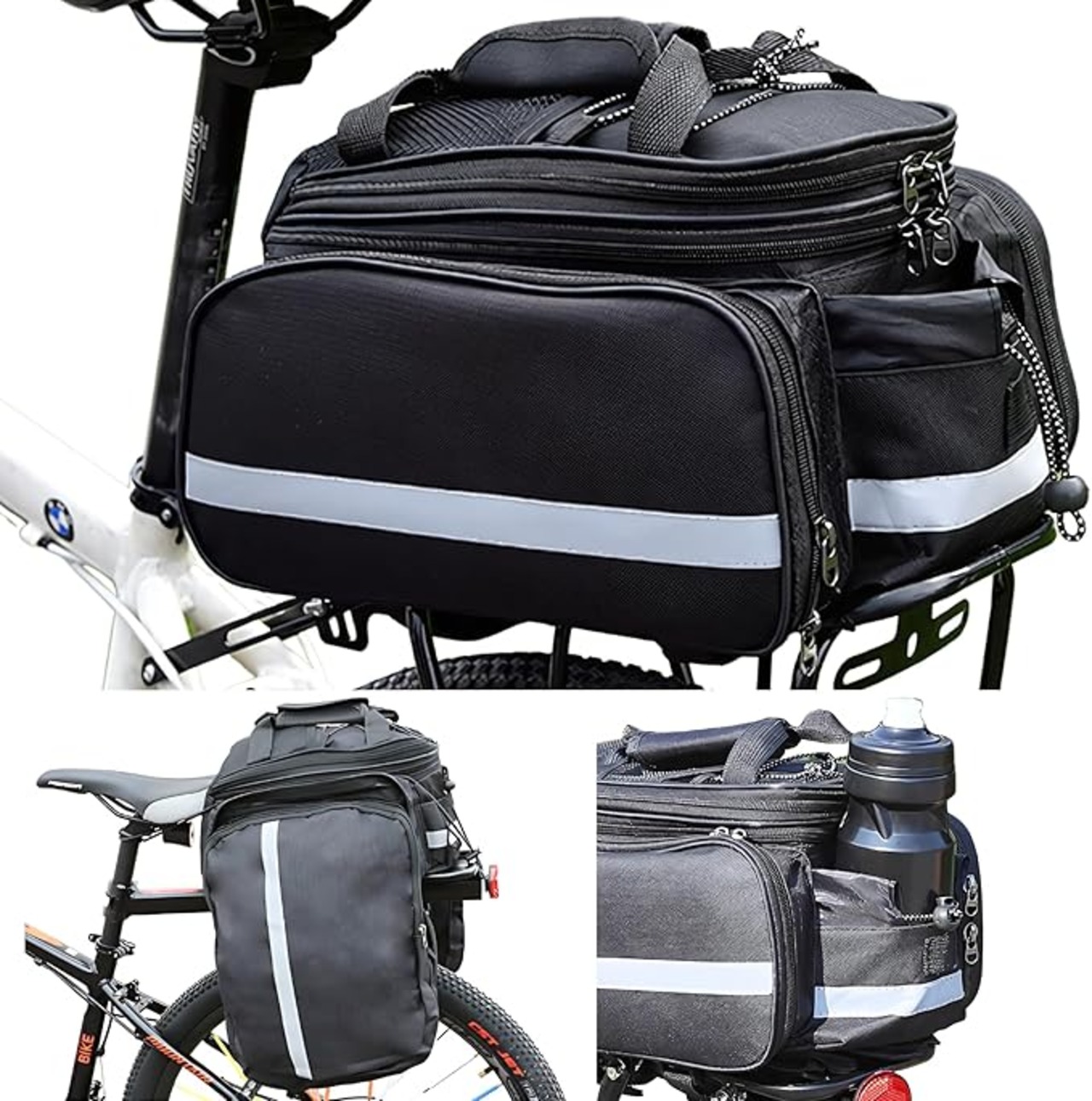 自転車 バッグ 自転車ラックバッグ ショルダーバッグ 拡張可能 15L-25L ベルクロ固定 ジッパー付きポケット ドリンクホルダー