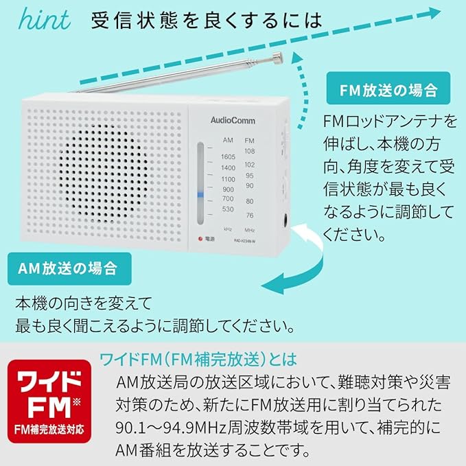 ■ 受信周波数:AM…530~1605kHz、FM…76~108MHz