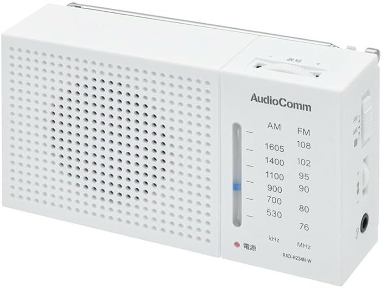 オーム(OHM)オーム電機AudioComm ラジオ 小型 AM/FMハンディラジオ ホワイト RAD-H234N-W 03-7053