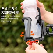 【取り付け簡単】このカップスタンドはダウンチューブ、シートチューブ、自転車フレームなどに簡単に設置でき、直径の調整も可能となります。弾力性があるABS素材を採用し、様々なサイズに適しています、バイクに傷付けることはありません。