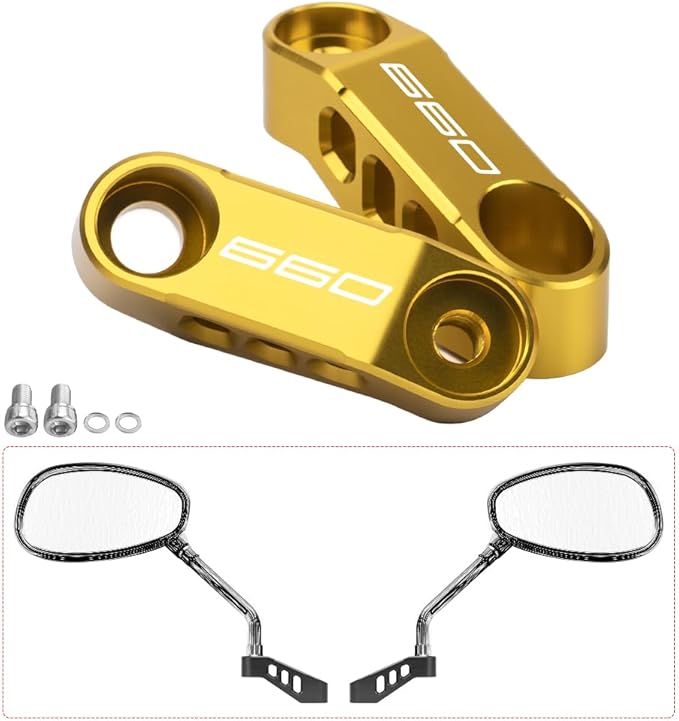 バイクのミラーステー 対応 Trident 660 2020-2026 ミラーマウントブラケット リアビューミラーライザーズ 拡張アダプター 視界向上 カスタマイズ可能な位置調整 trident 660 パーツ (ゴールド)