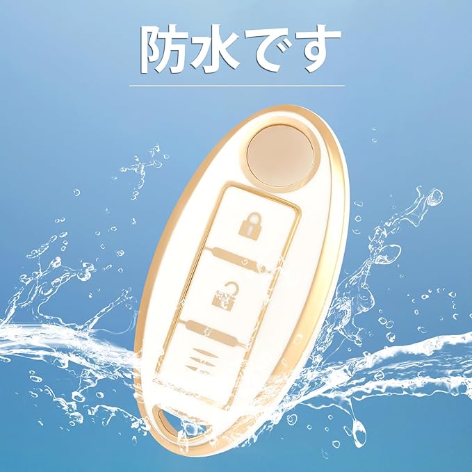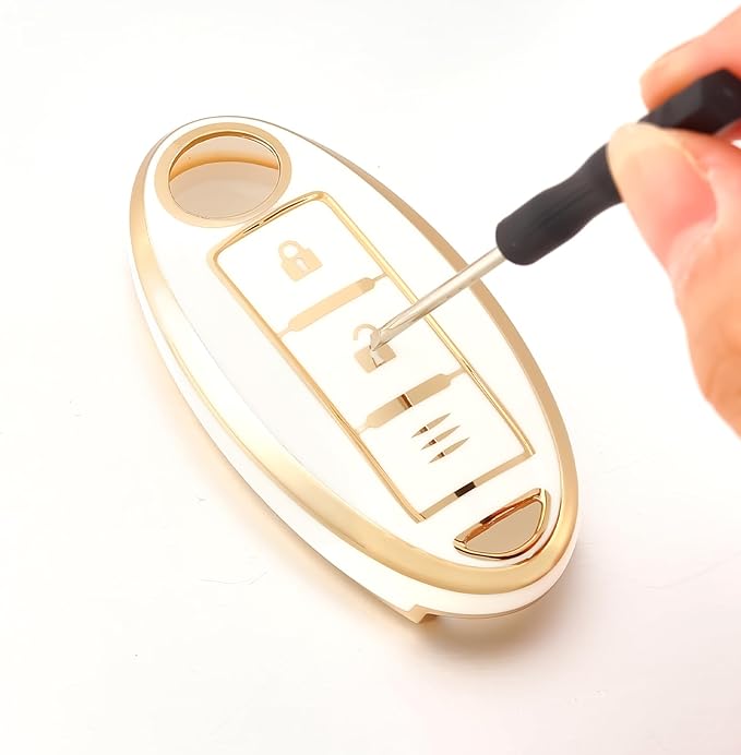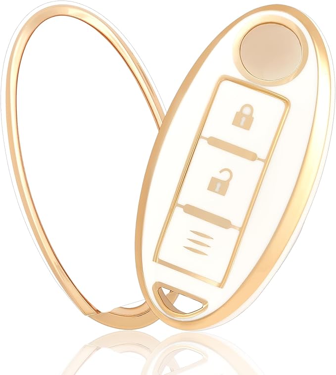 [OFF WE GO] 日産 TPU スマートキーフォブ (3ボタン、軽量、耐衝撃) - 日産ノート、デイズ、エクストレイルなどに対応 (非純正、ホワイトゴールド)