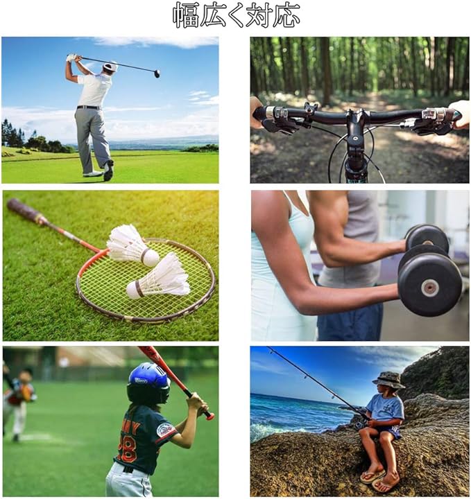 ◆【幅広く対応】すべてのノンスリップハンドルに対応します。テニス、ゴルフ、バドミントンのラケットや野球バットのグリップに巻くことできます。バーベルやダンベル、釣り竿、自転車や車いすのハンドルやハンマーなどの工具とスポーツシーン以外にも幅広く対応します。