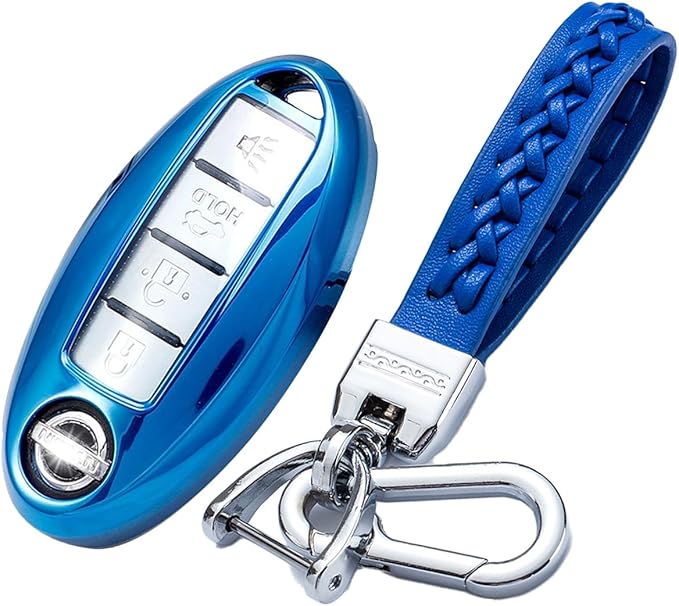 [VERISSY] スマート キー ケース キーホルダー セット ノート リーフ エクストレイル 日産車用 スマートキーカバー デイズ セレナ ルークス エルグランド set (ブルー)