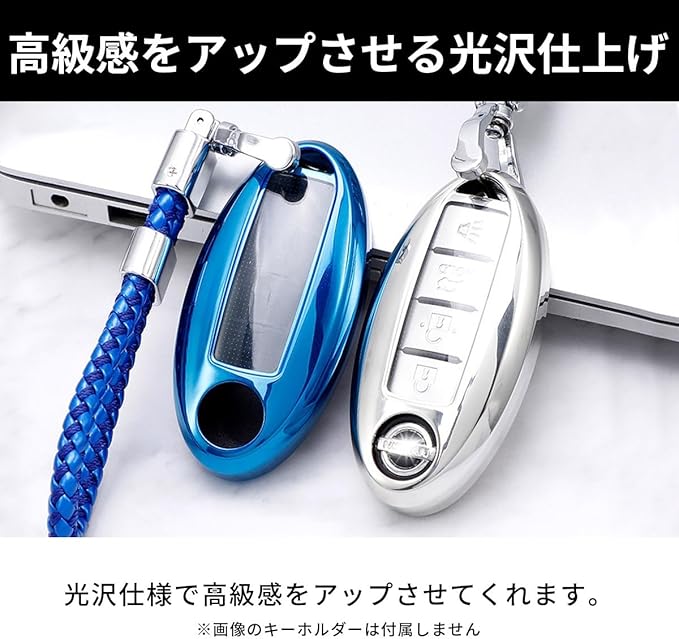 日産製の車種に適合するスマートキーケース+キーホルダーのセット商品です。 光沢仕様で高級感をアップさせてくれます。 シルバー、ブラック、レッド、ブルー、ピンク ※キーケースの背面カバーは全カラー統一でブラック色となります。 愛車の色に合わせたカラーリングのキーケースにするのもおすすめです! 柔軟なTPU素材のためボタンも押しやすい! 全面を保護する仕様のため傷からも守ってくれます。 キー操作の信号を妨げない設計のためカバーをしていても普段通り使用可能です。