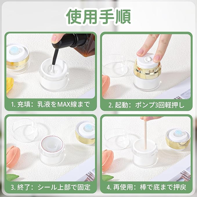 【マルチユースで幅広い用途に対応】クリーム/美容液/ローションなど、様々なスキンケア製品の保存に活用可能。1本で複数の用途に対応する便利さで、収納スペースを節約します。