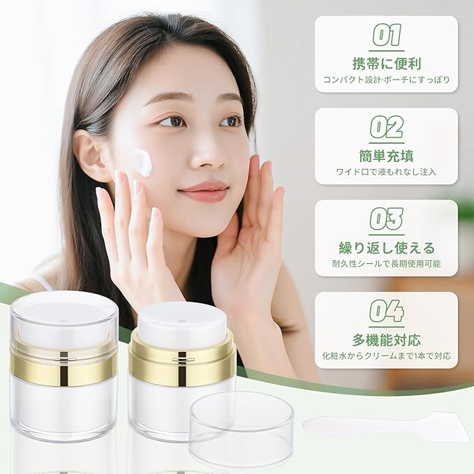 クリーム/美容液/ローションなど、様々なスキンケア製品の保存に活用可能。1本で複数の用途に対応する便利さで、収納スペースを節約します。