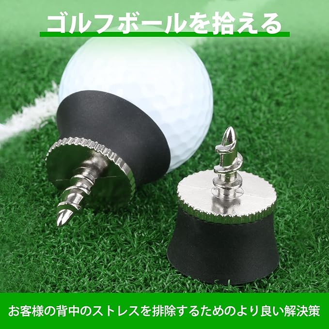 「親切なデザイン」:お客様は腰をかがめてゴルフボールを拾ったことがありますか?運動中に腰をかがめることが多いのも負担が大きいのではないでしょうか。本製品はパッティング後にゴルフボールを回収するように特別に設計されています。パターグリップの端にフィットし、ゴルファーが曲げずにゴルフボールを回収することを可能にします。