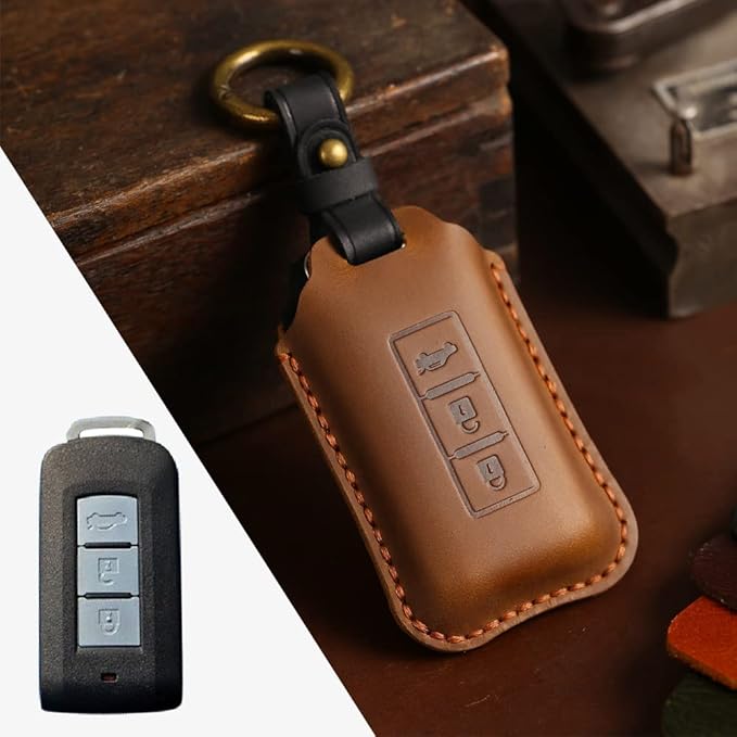 [Kinotaka] 三菱 日産用 スマートキーケース キーカバー 本革 レザー 3ボタン アウトランダー RVR ekワゴン ekスペース ミラージュ アイミーブ ランサーエボリューション デイズ デイズルークス DAYZ ROOX 等に適用 キーホルダー