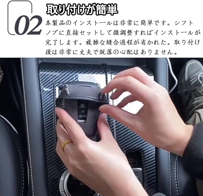 ★本製品のインストールは非常に簡単です。シフトノブに直接セットして微調整すればインストールが完了します。複雑な縫合過程が省かれた。取り付け後は非常に丈夫で脱落の心配はありません