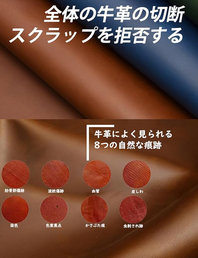 【注意事項】天然の牛革には紋様と毛穴があり、牛の成長に伴い、異なる部位の皮膚、その毛穴の大きさ、紋様の太さ、甚だしきに至っては色の深ささえ異なるが、同時に動物の体には多かれ少なかれ傷跡、虫咬み、色むらなどの状況が存在し、真皮の正常な現象であり、品質には問題ありません。 完璧主義者にとっては良い選択ではありません。ご了承いただける方のみ、購入をお願いたします。
