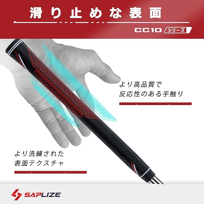 【高い衝撃吸収性】CC10シリーズは、新しく開発された高性能ゴムを使用しており、従来のグリップに比べて衝撃吸収性が10%向上しています。これにより、あなたのスイングがいつも通り安定した状態で行えます。