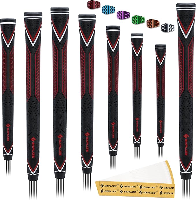 SAPLIZE 高性能ゴルフ用ラバーグリップ、高衝撃吸収、非滑り、8本のグリップ、標準/中サイズ、6色