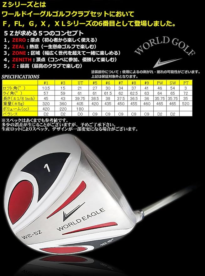 ワールドイーグル5Z メンズ ゴルフ クラブ フルセット ホワイト FホワイトバッグVer. 右用 フレックスRWE-5Z-WH-R-FWT