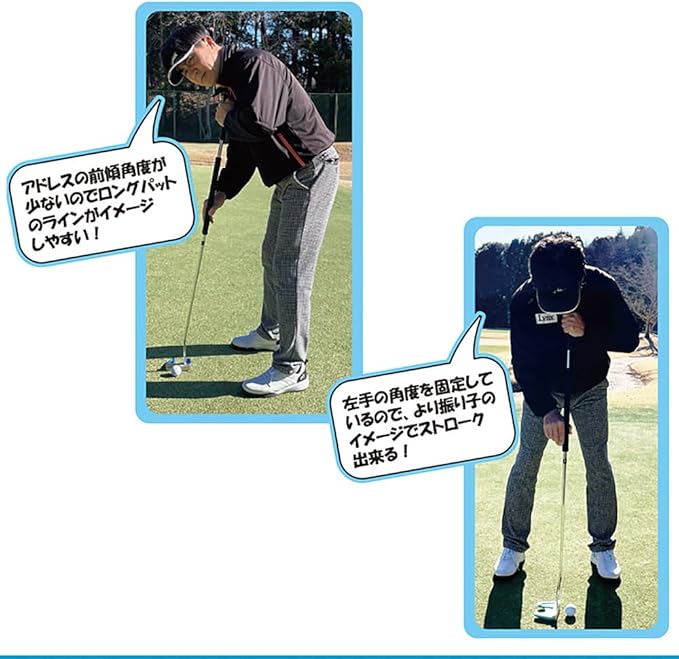 長尺パターの長いシャフトは、テイクバックの時シャフトがしなってしまい、パンチが入ってしまって距離感が安定しませんでした。