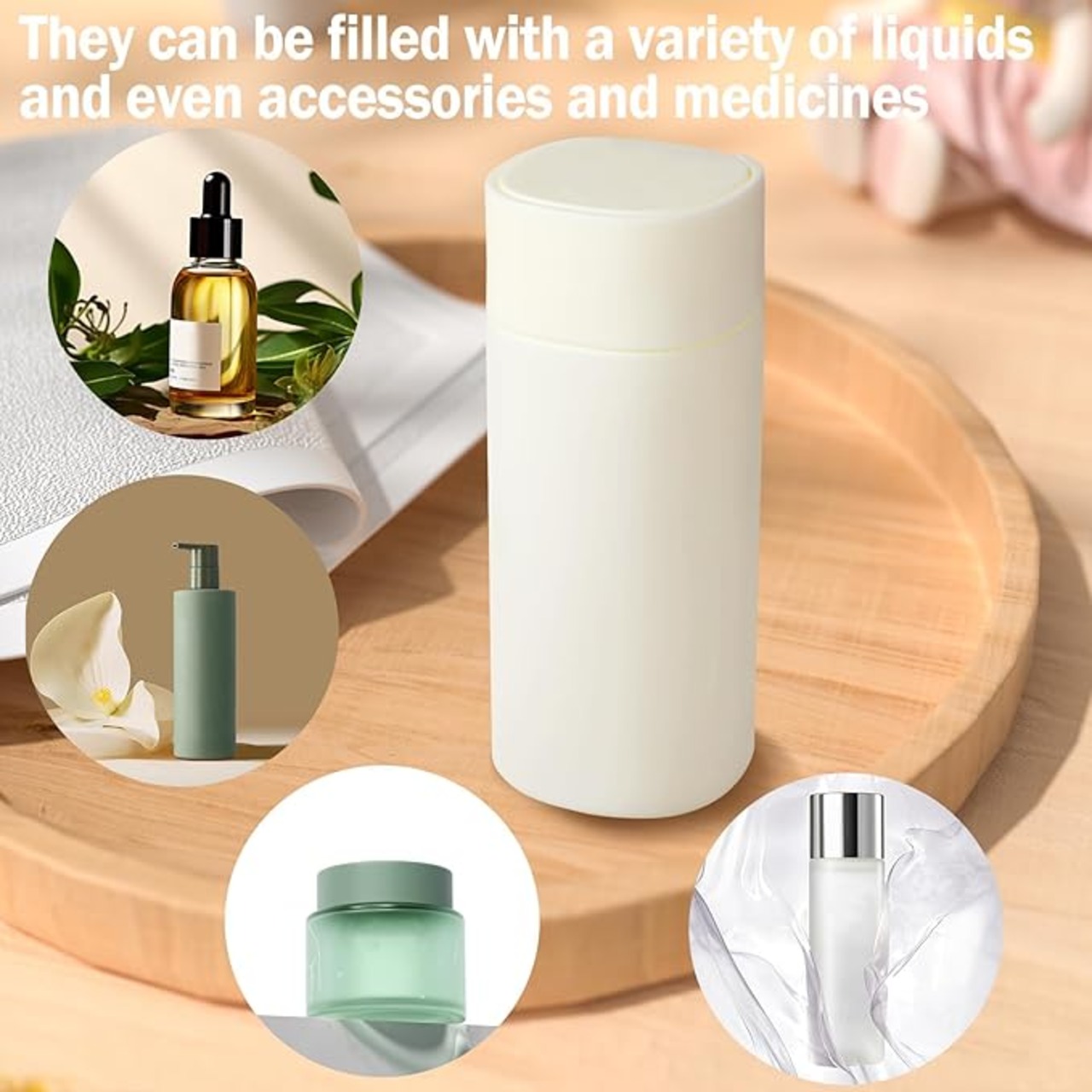 容量が違った5本セット: 89ml*2 & 100ml*2はトラベルボトルで14ml*1 はクリーム用容器です。旅行の日数に合わせて必要な容量でボトルを選択していただけます。使いたい分を小分けにして気軽に持ち運ぶことができます。
