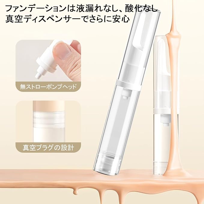 [使いやすい]:クリームやリキッド化粧品が収納できます。 持ち運びたいリキッドメイクを入れて、ポンプヘッドを押して、使いたい部分にリキッドを塗ります。空のエアレスポンプボトルを簡単に充填および補充でき、旅行にやさしく、便利で再利用可能です。