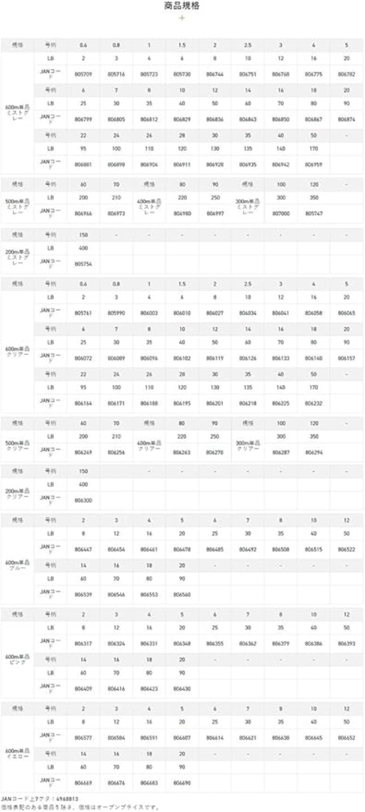 ●巻きグセがつきにくく、強さとしなやかさを合わせ持った糸質は、操作性に優れる上に汎用性も高く、使うフィールドを選びません。 ●初心者からベテランまで、繊細な釣りから大物狙いとあらゆるジャンルの釣りに幅広くお使いいただけるナイロンラインです。 ●2号〜20号には視認性を重視する場合やお好みに合わせてお選びいただけるように、ミストグレー・クリアー・ブルー・ピンク・イエローの5色をラインナップ。