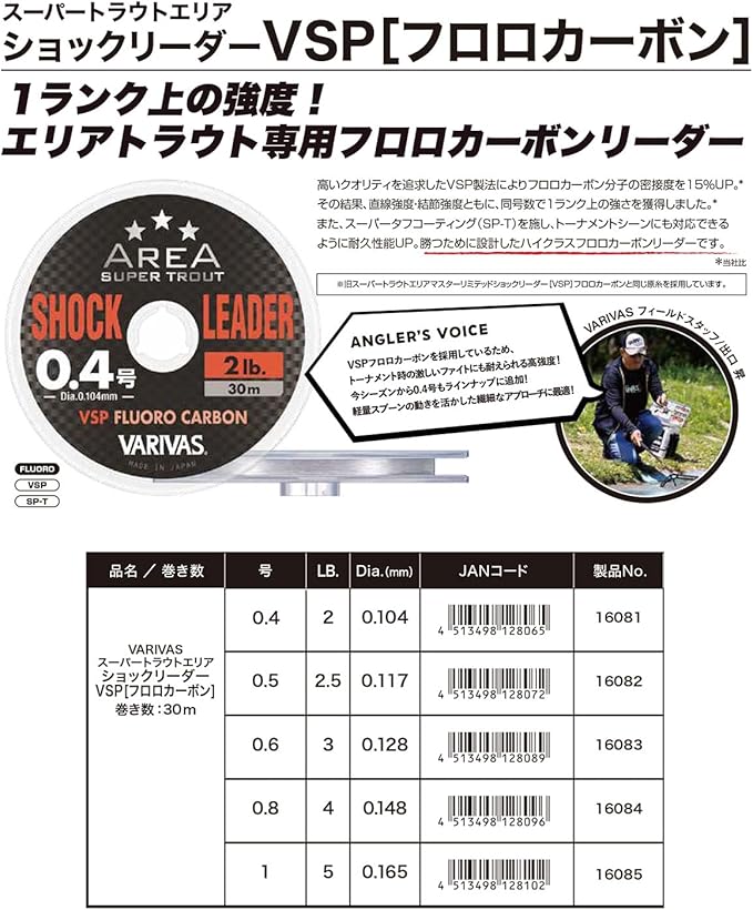 バリバス(VARIVAS) スーパートラウトエリア ショックリーダー VSP フロロ 30m ナチュラル