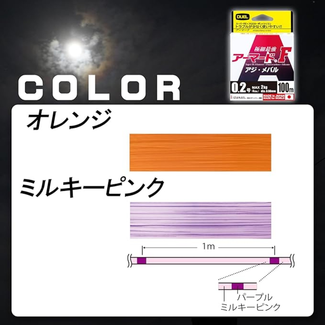 DUEL(デュエル) PEライン アーマード F アジ・メバル 100m/150m 0.2/0.3/0.4号 ミルキーピンク/オレンジ アジ・メバル