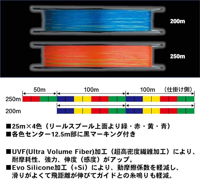 カラー:25m 4色(リールスプール上面より緑・赤・黄・青)
