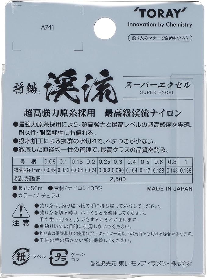 東レ(TORAY) ライン 将鱗 渓流 スーパーエクセル 50m ナイロン ナチュラル