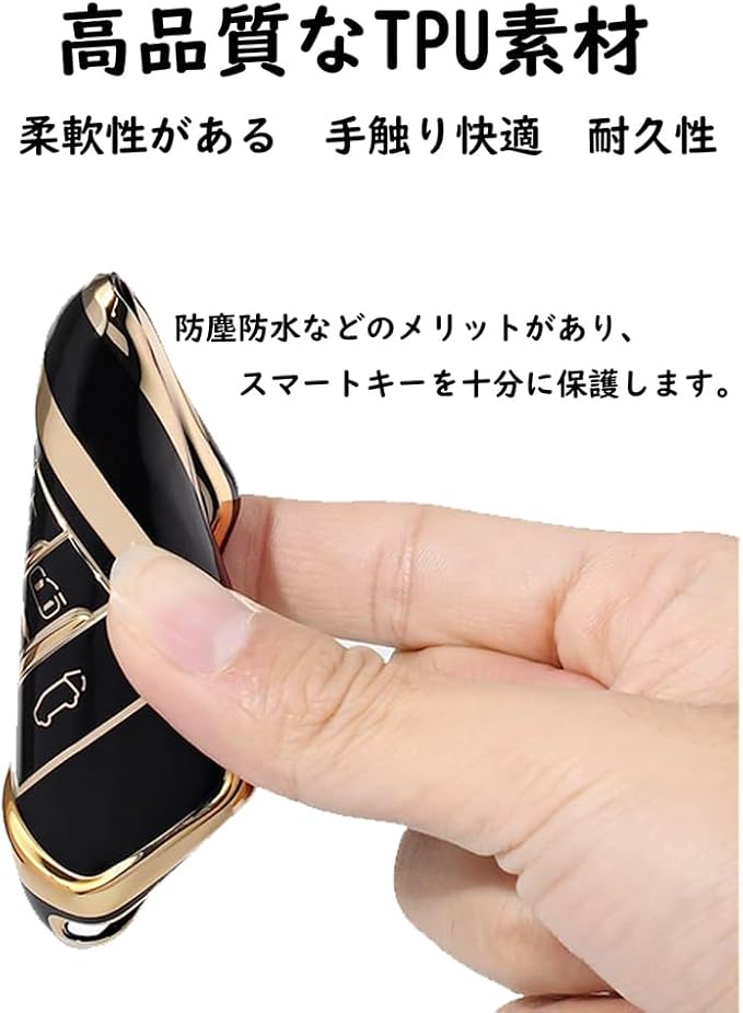 【高級な素材】高品質TPU素材を採用しており、摩擦に強く、割れにくく、軽くて長持ちし、車のキーをキズや摩耗を防止、全面的保護します。キーケースの形を綺麗に保ちつつ、柔軟なTPU素材で防塵、耐衝撃、高級感ある仕上がりとなっています。