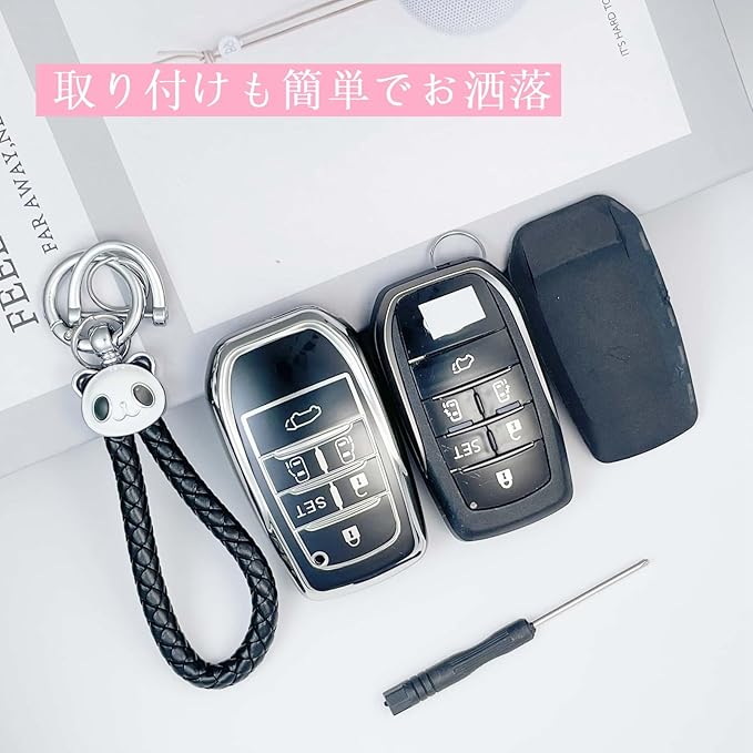 【電波が遮断されないし】ボタンは明確で、信号には影響しません、スマートキーのボタンも問題無く操作可。キラキラしていて、 メタリックの光沢があり、 パンダめちゃくちゃ可愛い 、耐久性、使いやすさ、軽さグッとです。また明るい色ではカバンなどから探しやすいです、素早く取り出せて。