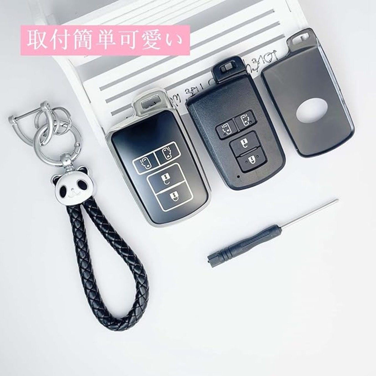 【電波が遮断されないし】ボタンは明確で、信号には影響しません、スマートキーのボタンも問題無く操作可。キラキラしていて、 メタリックの光沢があり、 パンダめちゃくちゃ可愛い 、耐久性、使いやすさ、軽さグッとです。また明るい色ではカバンなどから探しやすいです、素早く取り出せて。