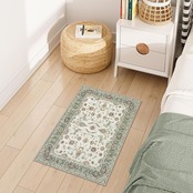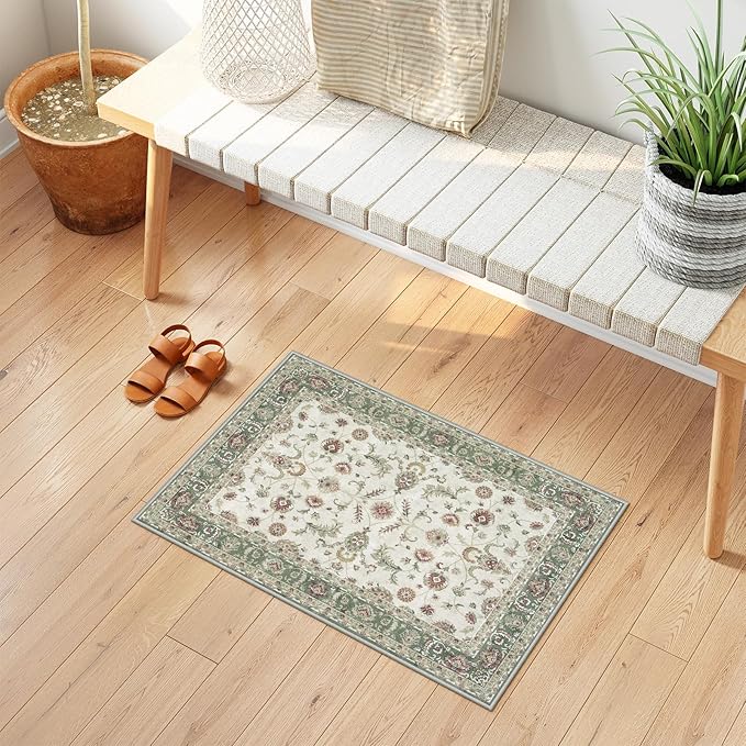 HAOCOO 玄関マット 室内 ペルシャ風 50х80cm 小さい ラグ おしゃれ 洗える 長方形 耐磨耗性 滑り止め 防音 ラグマット 屋外 泥落とし シェニール オールシーズン適用 抗菌防臭 軽量 花柄 グリーン