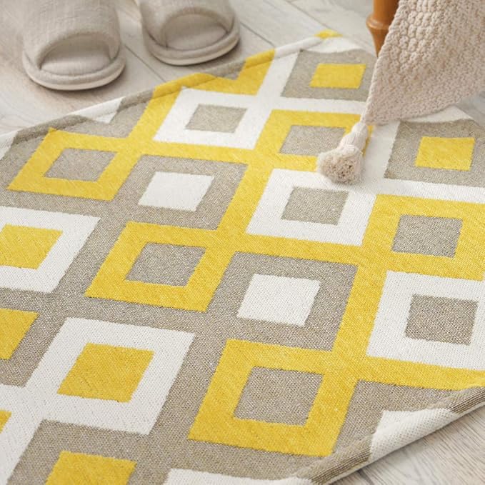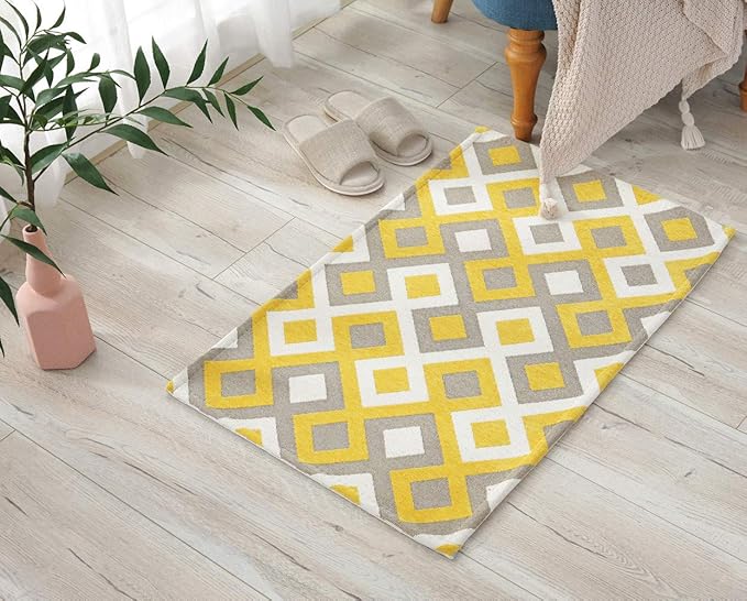 玄関マット カーペット 屋外 屋内 ドアマット 泥落とし ゴブラン織り すべり止め 洗える 床暖房対応 70 * 120cm イエローチェック 業務用 家庭用 オフィス用