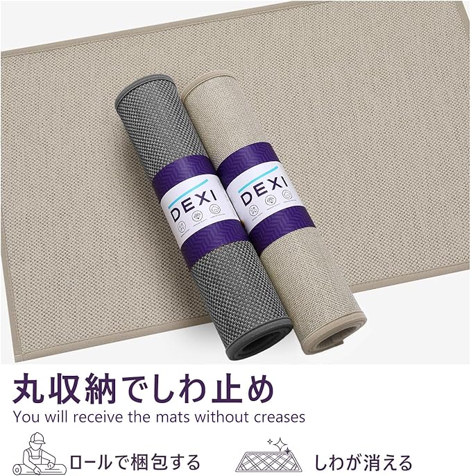 DEXI 玄関マット 室内 泥落とし 吸水 滑り止め 厚み約0.5cm 無地 シンプル エレガント 耐久性 お手入れ簡単 洗える 防カビ 防臭 おしゃれ 44x76cm ベージュ