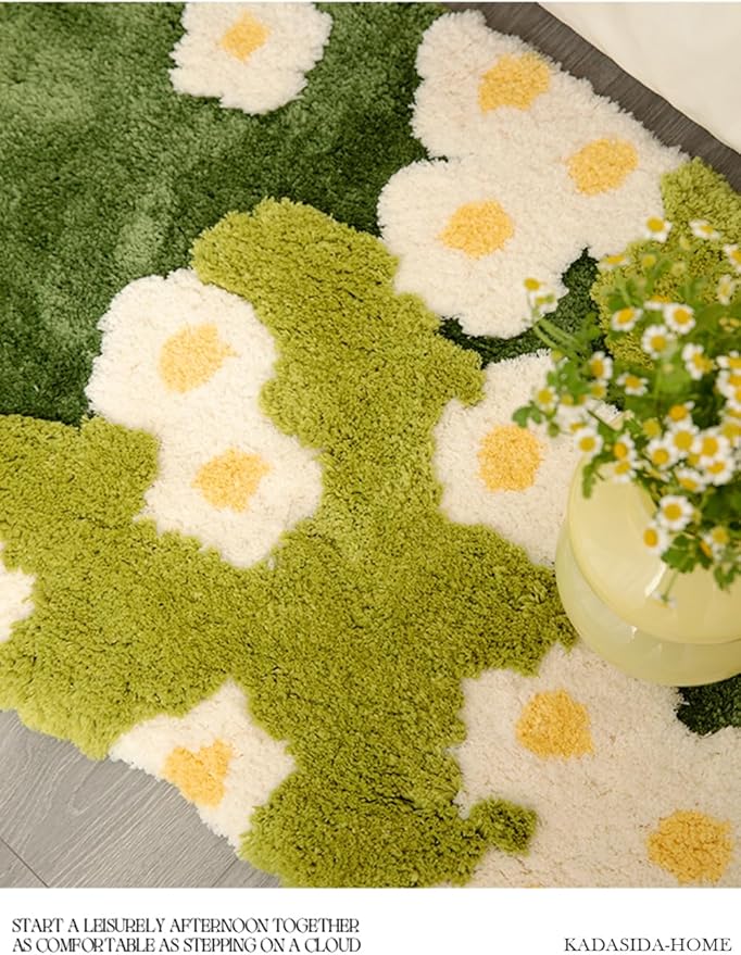 ❤自然の息吹❤白い花がある緑地のデザインで、緑色を基調としています。お部屋に癒しと生気をもたらします。自然の緑色が広がり、心地よい空間を演出し、リラックスした雰囲気を提供します。