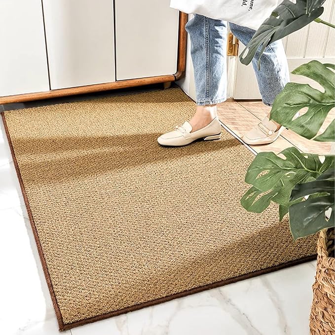 玄関マット 屋外 室内 滑り止め 業務/家庭用 エントランスマット 無地 速乾 マット シンプル 泥落とし 洗える 耐磨耗性 ドアマット (ブラウン, 45 75cm)