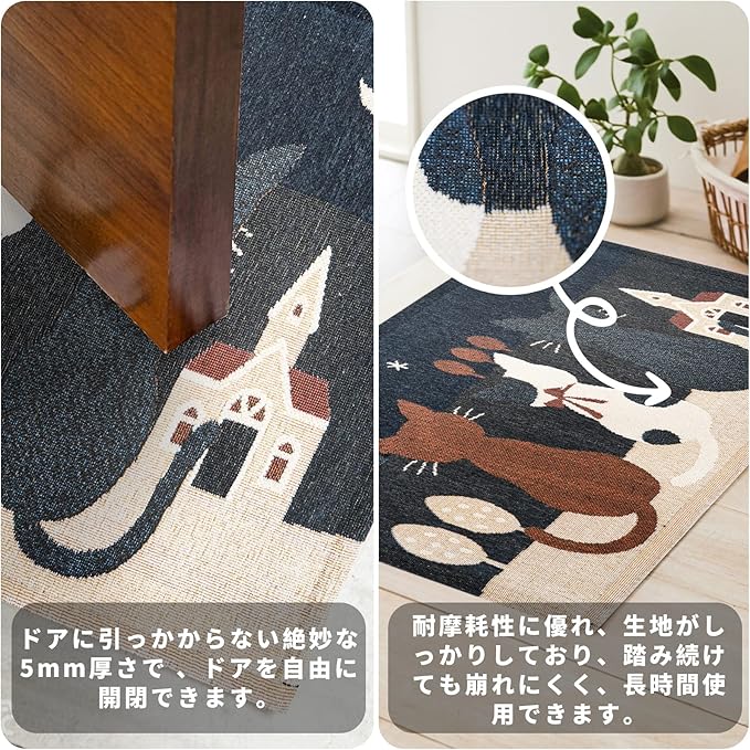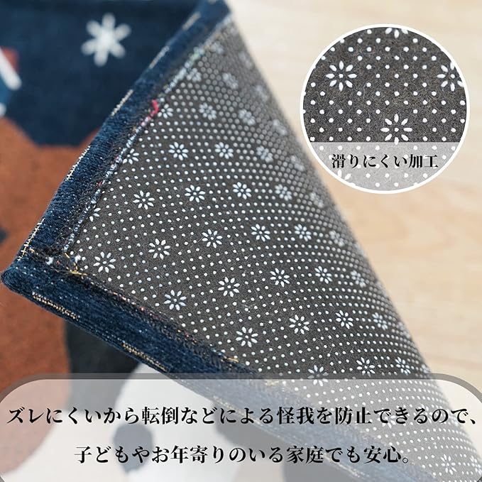 【滑り止め加工】裏材に「滑りにくい加工」を施しました。ズレにくいからお掃除機ラクラクです。マットのずれによる床キズ、転倒などによる怪我を防止できるので、お年を召された方や元気なお子様のいらっしゃるご家庭にもおすすめです。約5mm厚とドアに引っかからない絶妙な厚さで、ズレにくく、つまずきにくさを実現いたしました。