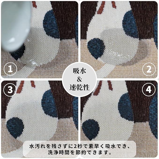 【超吸水・抗菌防臭・防カビ・床暖房対応】玄関マットはポリエステル繊維を採用し、空気との接触面積が大きく、水は急速に気化し、吸水性と防ダニ性能は抜群で、乾燥しやすいです。マット本体に抗菌材と防カビ剤が練りこまれています。カビの発生を防ぎ、細菌の繁殖を抑えます。ホットカーペット・床暖房にも対応しており、寒い冬場のキッチンでも快適です。