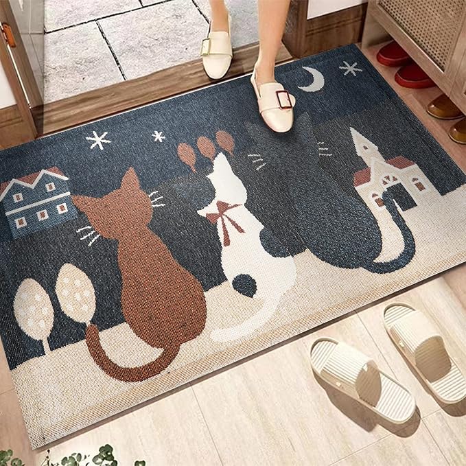 玄関マット 室内 おしゃれ 玄関マット 屋外 泥落とし 滑り止め 玄関マット 猫 吸水 洗える 耐磨耗性 年中使える 防ダニ加工 げんかんまっと 家庭用 店舗 飲食店 大判 (50 80cm, ネイビー)