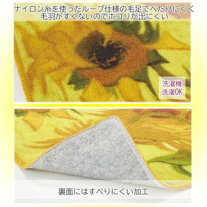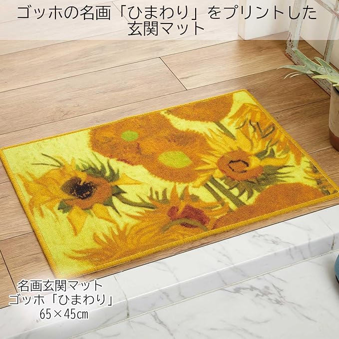 名画 玄関マット ゴッホ ひまわり 65 45㎝ 日本製 滑りにくい加工 室内 おしゃれ 北欧 大きめ 洗える 可愛い 業務用 風水 大きめ 洗える 厚さ1cm 大判 92149800