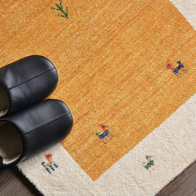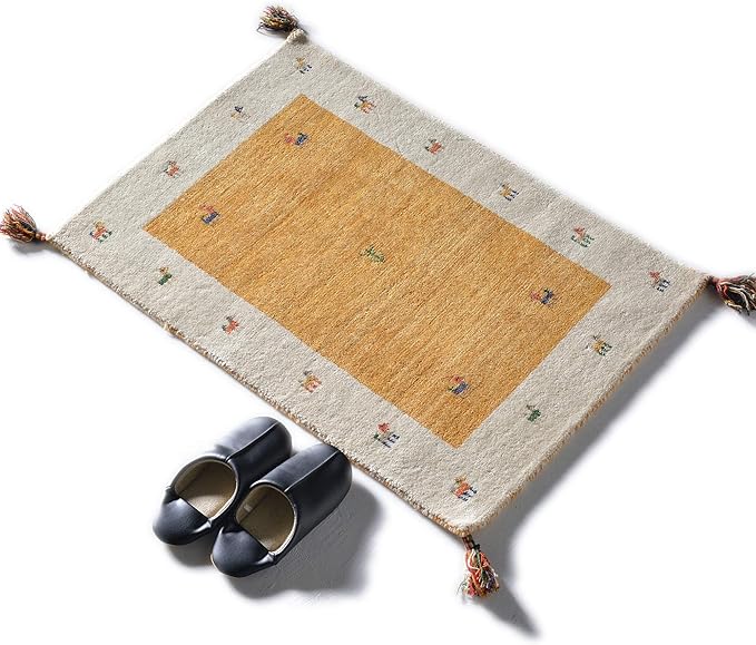 RUGS‐FACTORY 玄関マット 室内 おしゃれ ウールマット ギャベ ギャッベ 45x75cm 2 ゴールド ホワイト