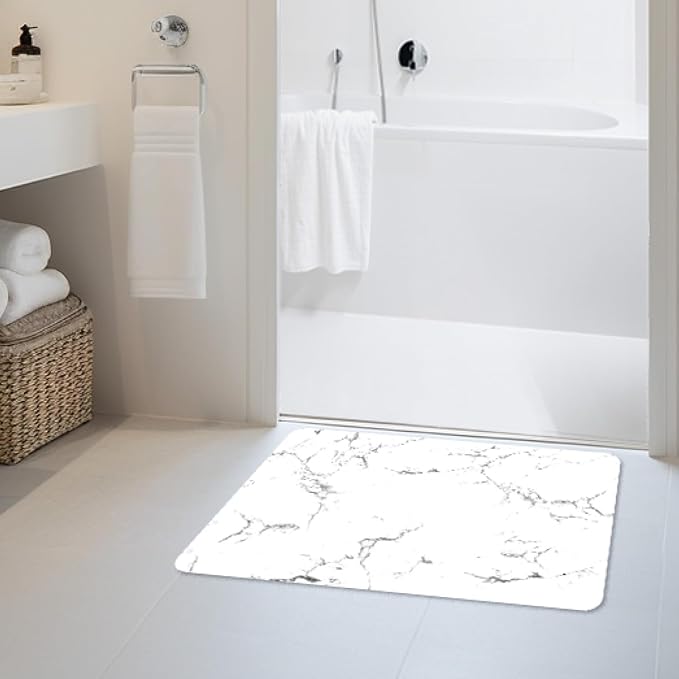 王様のバスマット【更に改善されましたx吸水力2倍サラふわUP】 珪藻土 バスマット 洗える マット キッチン ソフト 速乾 おしゃれ 安心 お風呂 足拭き ドア BOOMIE (角型大理石, 60cm 40cm)